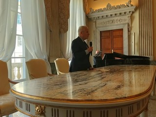 "Sono soddisfatto. È difficile restaurare così bene. Sono state bravissime le architette, sono state bravissime le maestranze in ogni particolare. Queste illuminazioni che rendono ancora di più l’atmosfera, le tende che abbiamo messo identiche a com’erano nel progetto che abbiamo visto nell’archivio di Stato, quando si progettò questo lavoro che era la sala del consiglio comunale di Porto Maurizio".