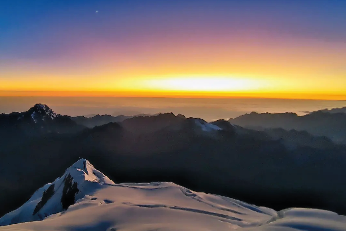 L’Huayna Potosí, con i suoi 6.088 metri, è stata la mia prima vetta di questa altitudine. Non è una montagna tecnicamente difficile, ma richiede resistenza e determinazione. Siamo partiti in gruppo nel cuore della notte, camminando con la sola luce della lampada frontale per vedere l’alba da lassù. E’ stata un’esperienza che non dimenticherò mai, difficile da descrivere a parole. Mi sono trovato in un luogo, dove il cielo sembrava più vicino e i colori erano più intensi; è stato un momento di pura connessione con la natura e con me stesso. Ho provato timore, eccitazione, e una gioia immensa nel raggiungere la vetta. Ogni passo mi ha insegnato qualcosa, ed è come se in quel momento tutto avesse avuto senso. Scalare un 6.000, però, richiede preparazione. Mi ero allenato molto sulle “Nostre Alpi” prima di partire, sia fisicamente che mentalmente, perché volevo affrontare la sfida al meglio.