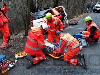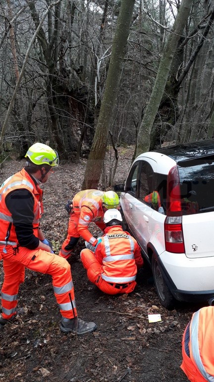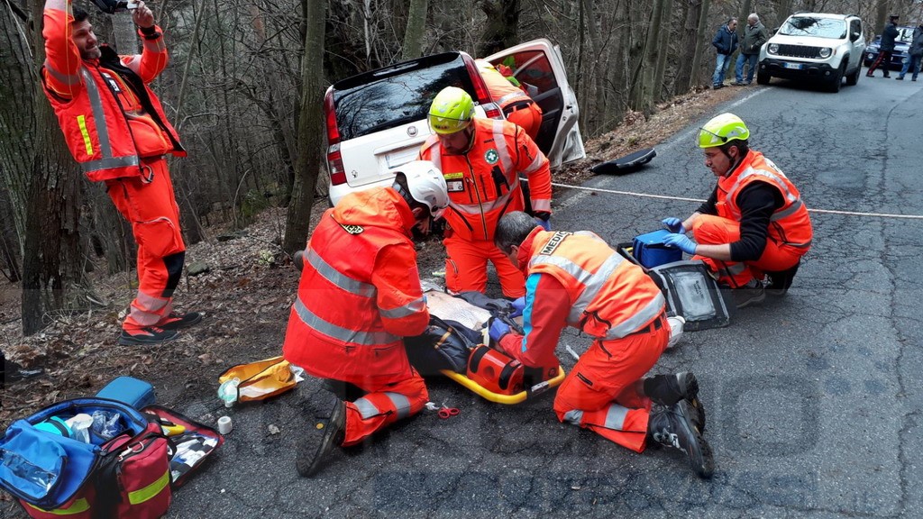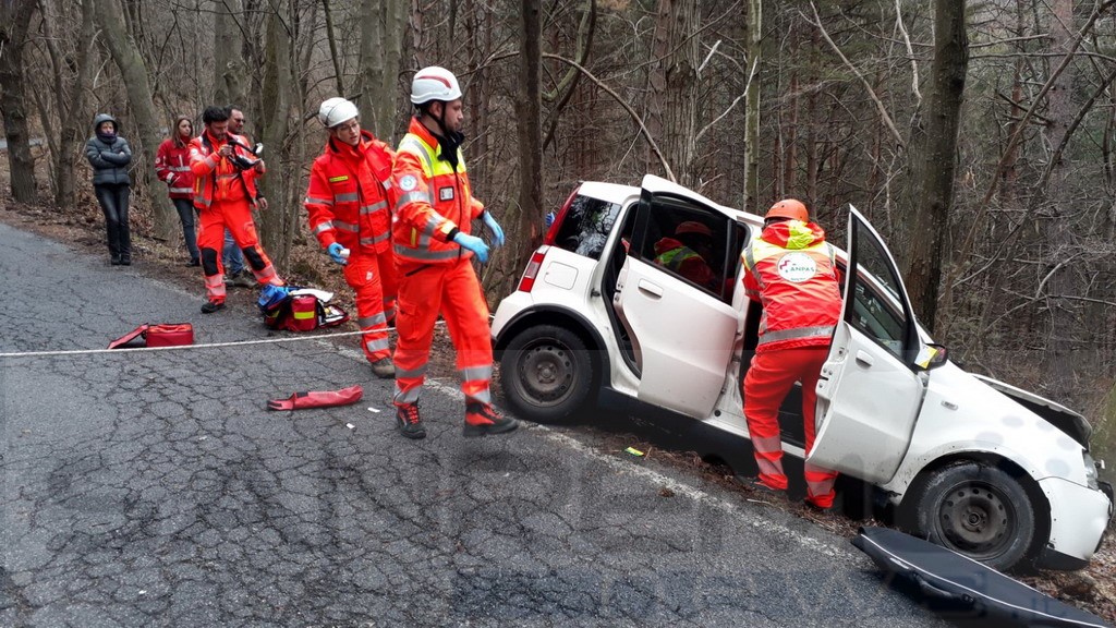 Simulato un incidente con una macchina con che, improvvisamente per la strada di San Bernardo di Mendatica, si trova un motociclista in senso contrario, l'asfalto viscido e la strada stretta non lasciano scampo il motociclista viene investito rimane sotto il muso della macchina che oltrepassando il ciglio di una curva rimane sospesa in bilico sulle fasce sottostanti.