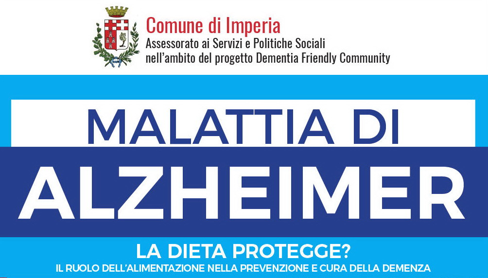 Sabato, dalle 15.30 alle 17 presso la Sala Museo dell'Olivo di Imperia, si terrà quindi un incontro informativo e formativo di sensibilizzazione sull'Alzheimer dal titolo 'Malattia di Alzheimer: la Dieta protegge?'.