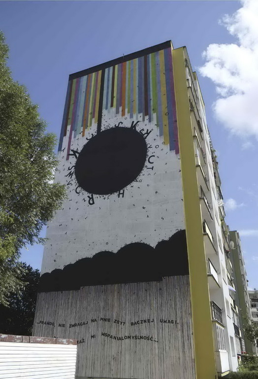 “Poeta della street art”, così è stato più volte definito, per i suoi dipinti murali e interventi di “poesia di strada”, che culminano in Polonia con un tributo su un palazzo di 10 piani a Wislawa Szymborska, poetessa premio Nobel per la letteratura nel 1996.