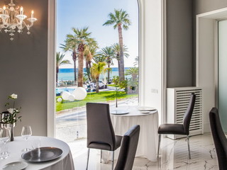 Un mood moderno in un'atmosfera carica di fascino ed eleganza, che trasmette agli ospiti prestigio ed armonia. Un servizio professionale e puntuale che si unisce al calore famigliare dell'accoglienza conferendo al Miramare the Palace una personalità vincente. "Mimosa Restaurant", il Gourmet per una vera e propria esperienza sensoriale, con il menu degustazione curato dallo Chef Manuel Marchetta, risalta le essenze della Riviera di Ponente. 70 posti con splendida vista mare e parco, aperto a pranzo e a cena, anche agli ospiti esterni e ad eventi privati. Una cornice di raffinatezza che esprime lusso, tradizione e naturalezza. Molto attiva l'offerta dei servizi con l'Afternoon-Tea pomeridiano dal richiamo londinese, il Brunch Domenicale per iniziare al meglio la tua Domenica e l'aperitivo serale al Sunset-Bar con un panorama mozzafiato. La cura del dettaglio, l'innovazione in termini di ospitalità ed il mantenimento della tradizione sono i cardini dell'accoglienza di Miramare The Palace.