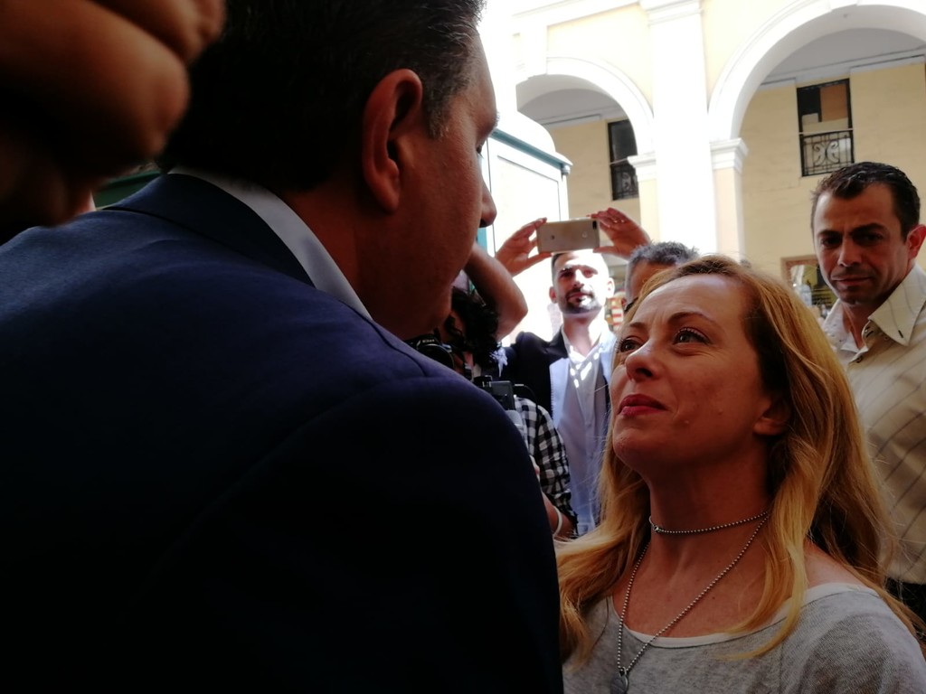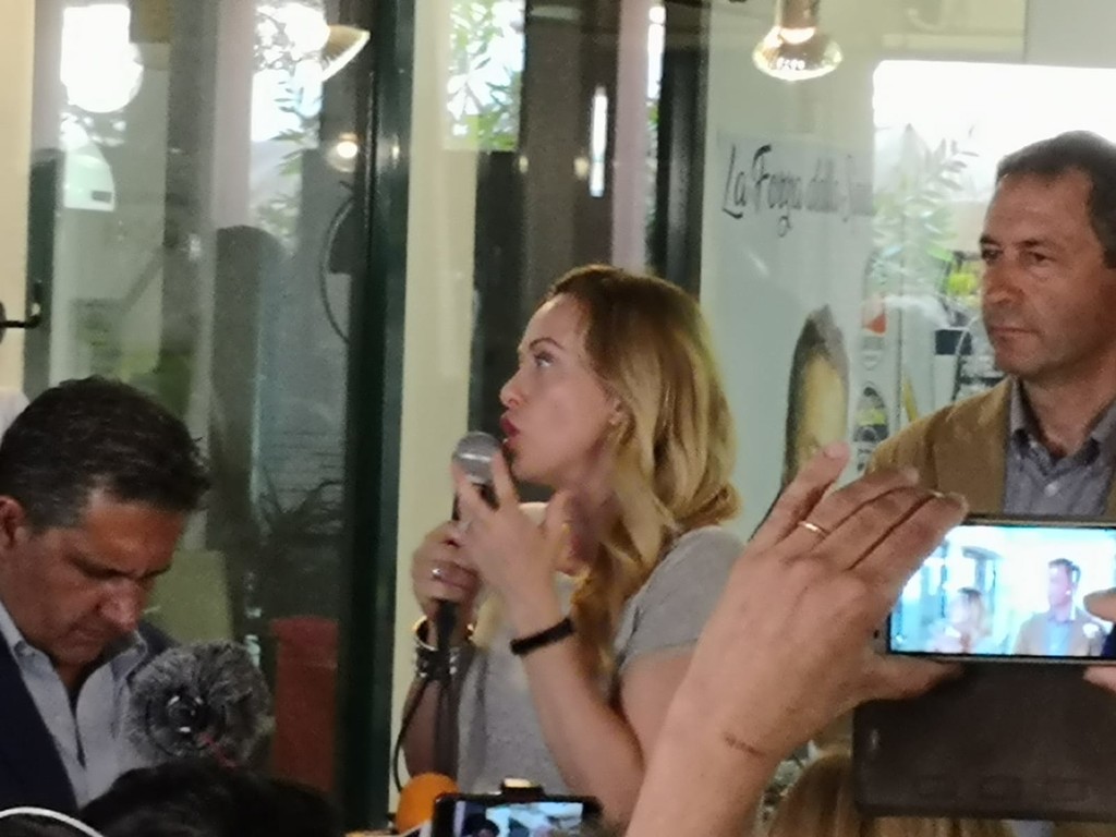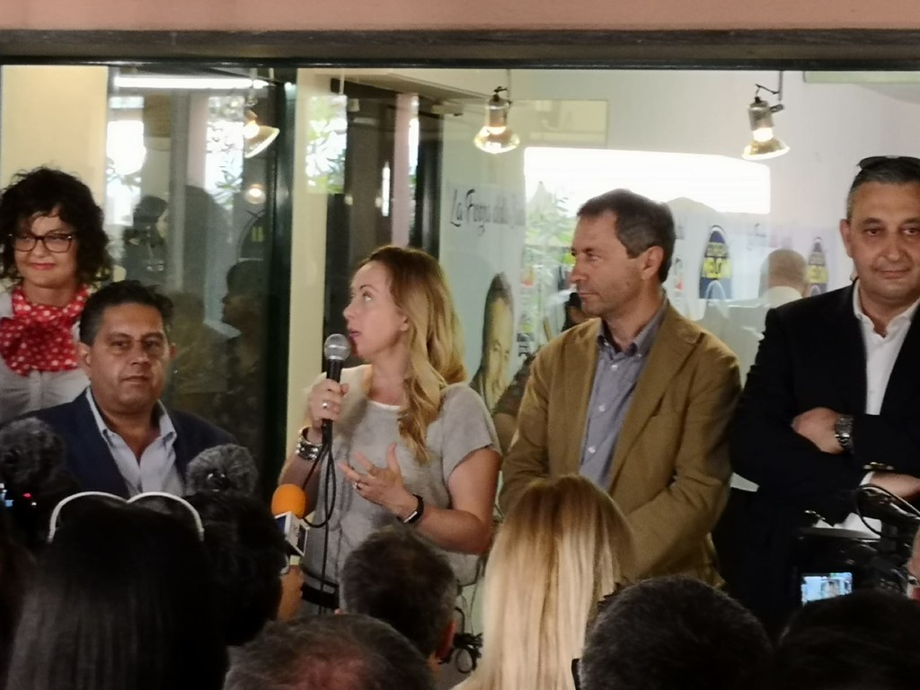 Ecco che cosa ha detto Giorgia Meloni ai giornalisti prima di iniziare il comizio "Su Imperia la Coalizione è unita su Luca Lanteri e possiamo vincere. C’è un laboratorio che vede il centrodestra compatto che può fare la differenza e gioca per vincere. A me interessa parlare di Luca Lanteri e non voglio parlare degli altri candidati (riferendosi a Claudio Scajola ndr). Ognuno ha legittimamente il diritto di correre e i cittadini di scegliere e spero scelgano Lanteri, una opzione innovativa. Oggi c’è bisogno di combattere per difendere la nostra sovranità. Oggi Il commissario europeo Oettinger, dice una cosa che considero gravissima, ‘ i mercati insegneranno agli italiani come si deve votare’. Voglio dire a questo burocrate nominato che saremo forse noi italiani ad insegnare ai burocratiche cosa sia la democrazia. Cosa sia l’amore per la propria terra, la propria patria, la difesa dei cittadini contro la speculazione, contro gli interessi dei pochi e le oligarchie. Io penso che Mattarella abbia agito al di fuori ed al di là delle sue prerogative. Il problema riguarda questo governo a cui non voterei la fiducia ma un precedente pericoloso. Se Mattarella vuole fare politica ed il capo del governo deve farsi eleggere dai cittadini come in un qualunque sistema presidenziale. Noi vogliamo una modifica in questo senso ma finché siamo in una repubblica parlamentare quello che ha fatto Mattarella non lo poteva fare”.