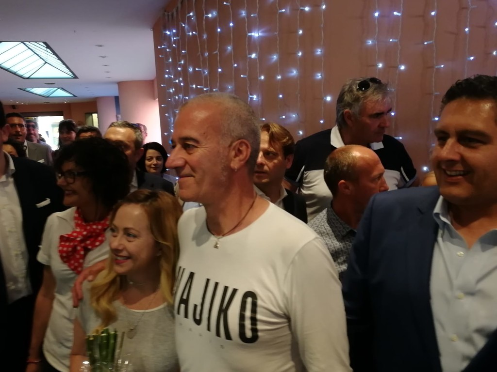 Oltre a lei, presenti anche il presidente della Regione Liguria Giovanni Toti, i massimi esponenti locali e regionali di Fratelli d'Italia, come Massimiliano Iacobucci, Gianni Berrino e Lorenza Bellini, oltre al candidato Sindaco Luca Lanteri, l'assessore regionale Marco Scajola, il presidente del Consiglio Regionale Alessandro Piana e molti dei candidati in Consiglio Comunale in sostegno di Lanteri.