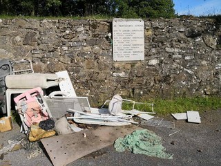 Vergogna a San Bernardo di Conio. Una discarica di ingombranti abbandonati a fianco a una targa in memoria dei Partigiani (Foto)