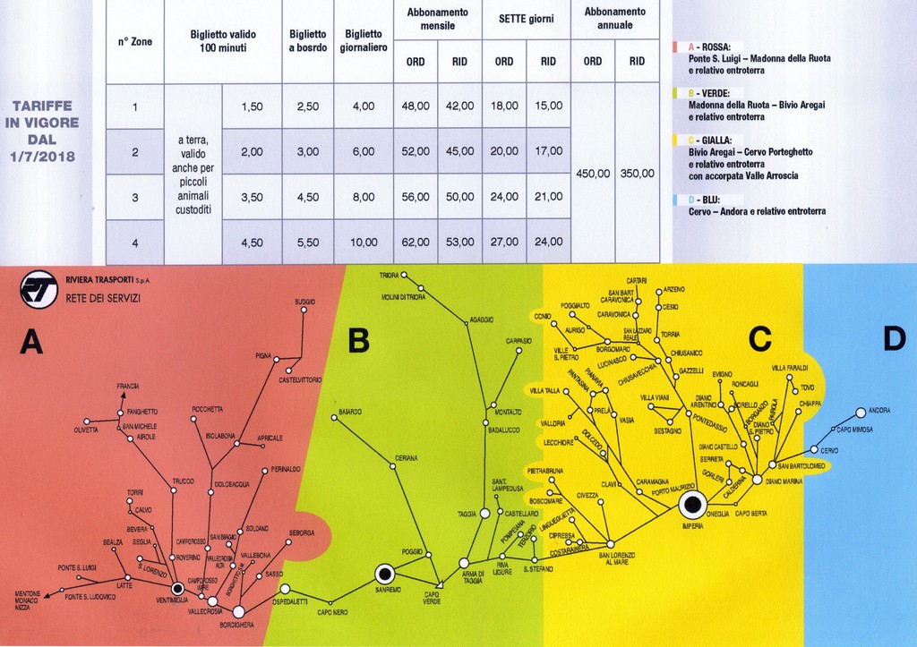 E’ stato altresì istituito un unico biglietto giornaliero che consentirà di viaggiare il giorno della convalida senza limiti di corse. Dal primo luglio saranno reperibili ed acquistabili presso i punti vendita Riviera Trasporti esclusivamente i nuovi titoli di viaggio; gli utenti in possesso dei vecchi biglietti potranno utilizzarli sino al 31/07/2018; dopo tale data potranno esclusivamente essere convertiti nei nuovi titoli presso la Sede aziendale di Imperia, Via Nazionale 365, entro il 31/08/2018.