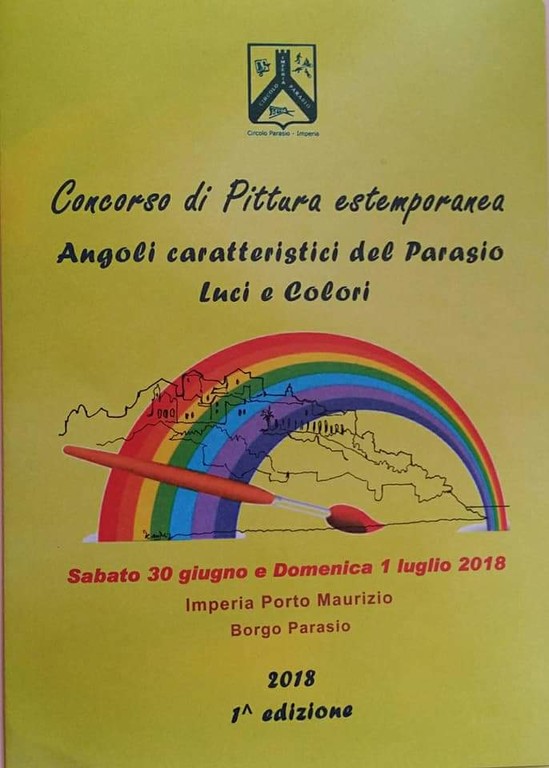 Si terrà sabato 30 giugno e domenica 1 luglio 2018, la prima edizione del Concorso di pittura estemporanea "Angoli caratteristici del Parasio. Luci e Colori" 2018, ad Imperia Porto Maurizio, in occasione dei festeggiamenti di San Pietro al Parasio e nell’ambito della ricorrenza del Cinquantesimo (1968 –2018) della fondazione del Circolo Parasio. La partecipazione è aperta a tutti i pittori ed il tema del concorso è il seguente: I colori, le luci, le ombre del Parasio