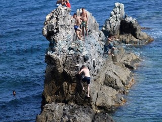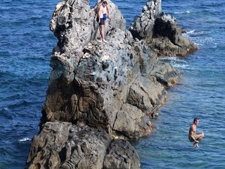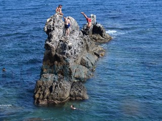 E ad Imperia, per la prima domenica di mare ‘vero’, non potevano mancare i temerari che si sono esibiti nei tuffi dalla ‘Galeazza’. Una serie di salti nell’acqua che hanno attirato l’attenzione dei bagnanti sull’arenile ma anche di molti passanti sulla strada sovrastante.