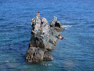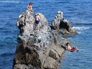 Dai tuffi di un certo pregio a quelli a ‘bomba’, in un mare blu e limpido che attirava gli appassionati per una domenica di grande divertimento.
