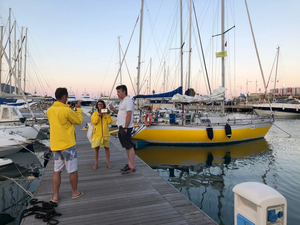 Come in ogni porto toccato dall’iniziativa, l’equipaggio di Zones Portuaires ha raccolto una testimonianza video che verrà pubblicata su www.zonesportuaires-genova.net e che farà parte di una presentazione, all’arrivo a Marsiglia, in cui verranno raccontate le tappe del viaggio. A ricordo di questo momento e come simbolo per la mostra temporanea che verrà allestita in occasione di Zone Portuaires 2018, il Vice Presidente Savini ha donato il crest del Raduno al capitano di Yellow con l’augurio di rivedersi presto, magari proprio alle Vele d’Epoca di Imperia a settembre.