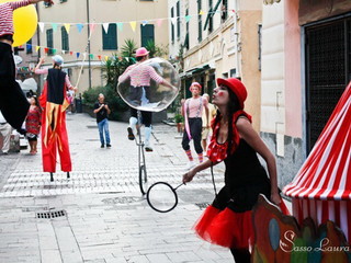 Si tratta di uno spettacolo itinerante di arte circense, due ore di divertimento e spensieratezza che coinvolgeranno, oltre alle principali vie e piazze del Borgo, numerose famiglie e turisti.