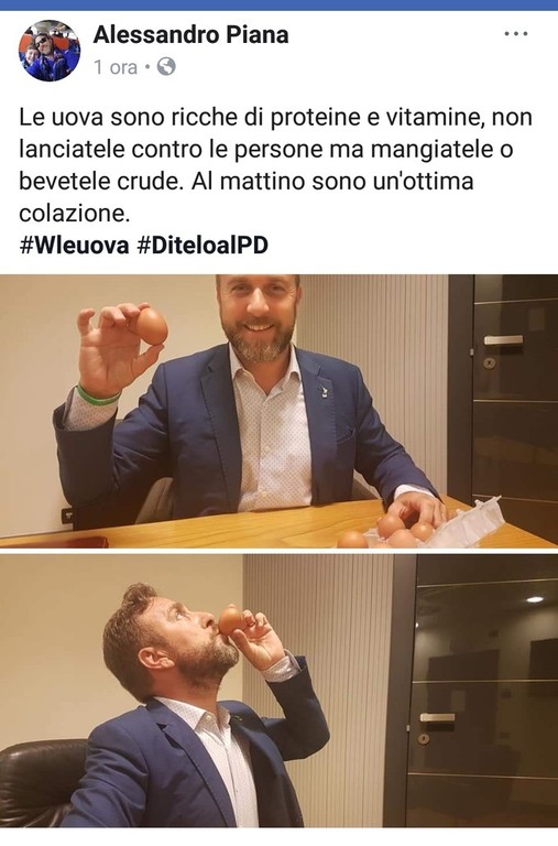 "Le uova sono ricche di proteine e viitamine, non lanciatele contro le persone ma mangiatele o bevetele crude. Al mattino sono un'ottima colazione".