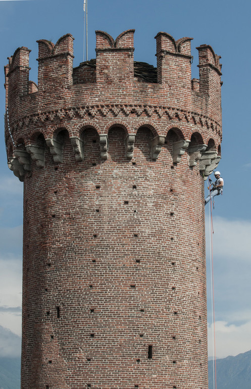 Il fatto che il Comune di Ivrea disponesse di un budget contenuto per i lavori ha reso ottimale l’utilizzo della tecnica di “Restauro in quota” nella quale Formento Restauri è specializzata: essa, infatti, grazie all’utilizzo di personale non soltanto altamente specializzato nel proprio compito (restauratori, muratori, decoratori, lattonieri, etc), ma addestrato e certificato per lavorare in fune e in anticaduta, consente il risparmio economico derivante dalla totale eliminazione dei ponteggi. E non è tutto: evitando di nascondere un monumento dietro un’impalcatura, anche l’estetica ci guadagna. E questo è un aspetto fondamentale per un luogo come Ivrea, che ha sempre prestato attenzione alla promozione della propria immagine fino ad aver conquistato quest’anno il titolo di “Città Industriale del XX Secolo riconosciuta come Patrimonio dell’Umanità dell’Unesco”, un traguardo raggiunto da soli altri 53 comuni in Italia.
