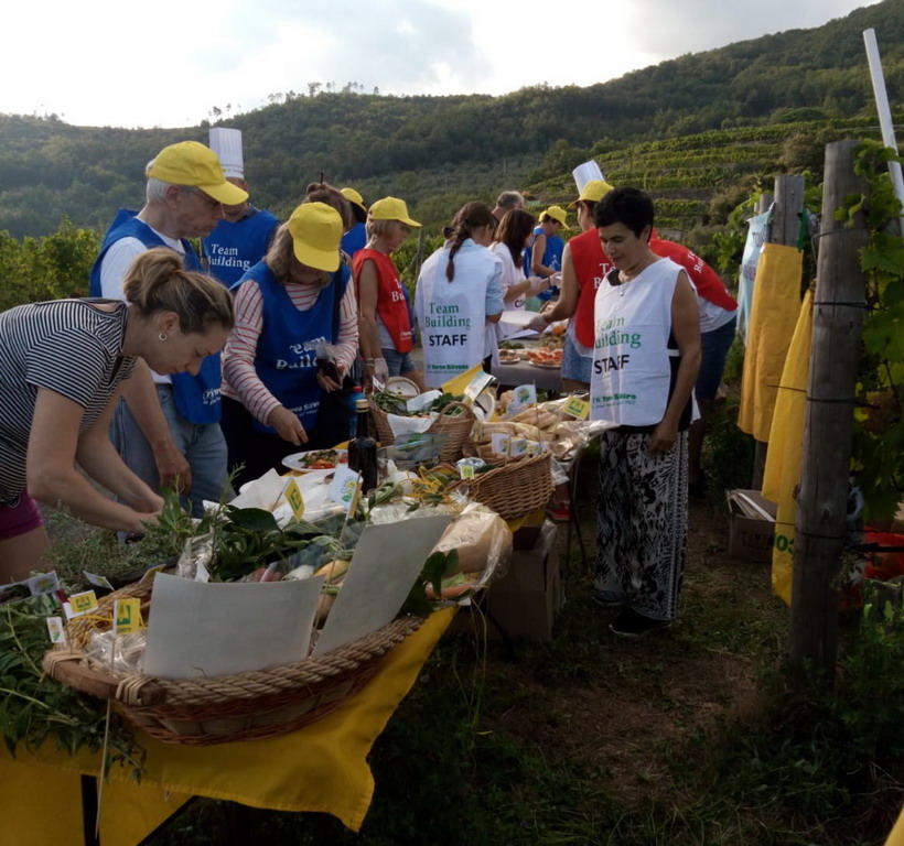 Nella vigna dell’azienda Massimo Alessandri i partecipanti ai giochi di squadra si sono cimentati nell’arte dei bouquet di verdura, nella realizzazione di salse al mortaio, nella sommellerie e, supportati dal maestro Luciano Conteduca, nella tecnica dell’acquarello.