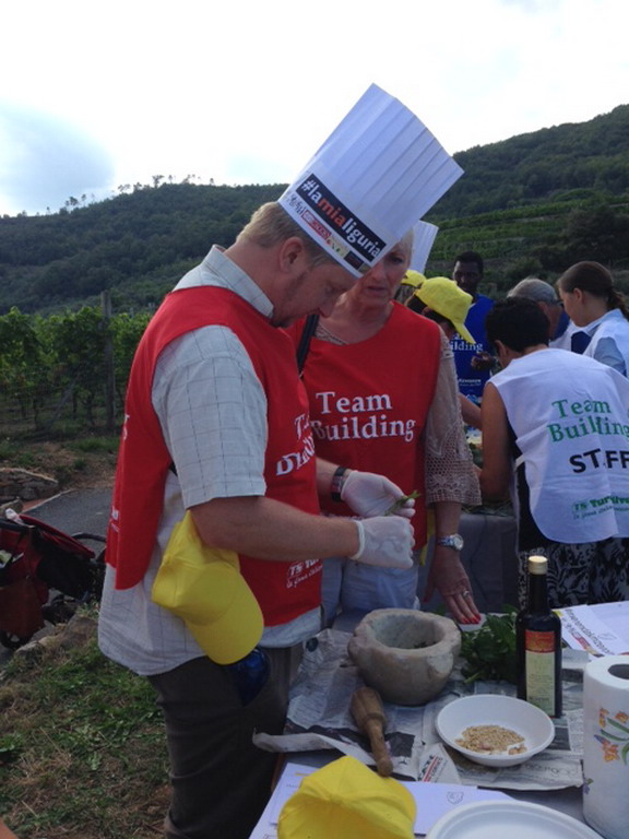 Tutte le prove dovevano essere fotografate, filmate e commentate sul profilo face book di ciascuno con l’obiettivo di conquistare più 'like' degli altri concorrenti, una sfida che si è conclusa con la prova di cooking team building consistente nella preparazione di una merenda a km Zero accompagnata dal Pigato della Cantina Alessandri Massimo.