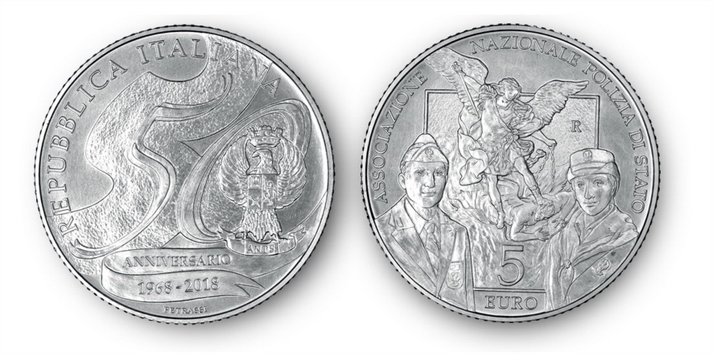 La moneta, ideata e disegnata per l’occasione dall’artista Silvia Petrassi, raffigura sul dritto la composizione del logo dell’Associazione Nazionale della Polizia di Stato, con il numero 50 e le date 1968 -2018, anno della fondazione e di emissione della moneta, mentre nel rovescio, in primo piano, sono ritratti due rappresentanti dell’ANPS in divisa, sullo sfondo di San Michele Arcangelo, ripreso da un particolare di un dipinto di Guido Reni. Le celebrazioni dell’anniversario seguiranno, inoltre, nei giorni 29 e 30 settembre, unitamente alla ricorrenza di San Michele Arcangelo, Santo protettore della Polizia di Stato.