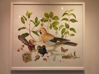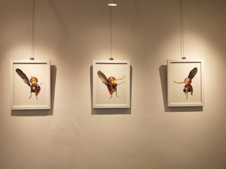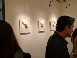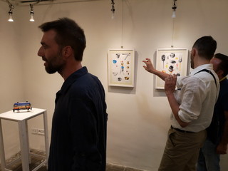 "È una mostra dedicata all’arte contemporanea. Ospitiamo due artisti emergenti e molto apprezzati sia sul mercato che sul web: Angelo Maisto e Massimo Sirelli. Il filo conduttore di questa mostra, che appunto di chiama Rianimare l’inanimato, sono i personaggi che questi due artisti realizzano applicando a materiali di riciclo o di uso comune una creatività particolare che li rende pieni di personalità e carattere. Maisto li ritrae poi nei suoi acquerelli e li inserisce all’interno di mondi fantasiosi dove la botanica la fa da padrone. Un’esecuzione magistrale che porta a una riproduzione quasi iper realistica delle piante e dei fiori che realizzano il contesto nel quale vengono appunto inseriti questi personaggi. Massimo Sirelli invece mette in mostra quattro sculture, personaggi robot, che sono stati realizzati assemblando dei pezzi senza saldature. Si tratta di materiali che hanno già una propria storia come una scatola della Turkish Airlines, o un’antica latta di pomata per lucidare le scarpe che apparteneva a sua nonna"