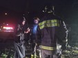 Le porzioni di lamiera sono finite sui cavi dell'alta tensione. Vigili del Fuoco al lavoro