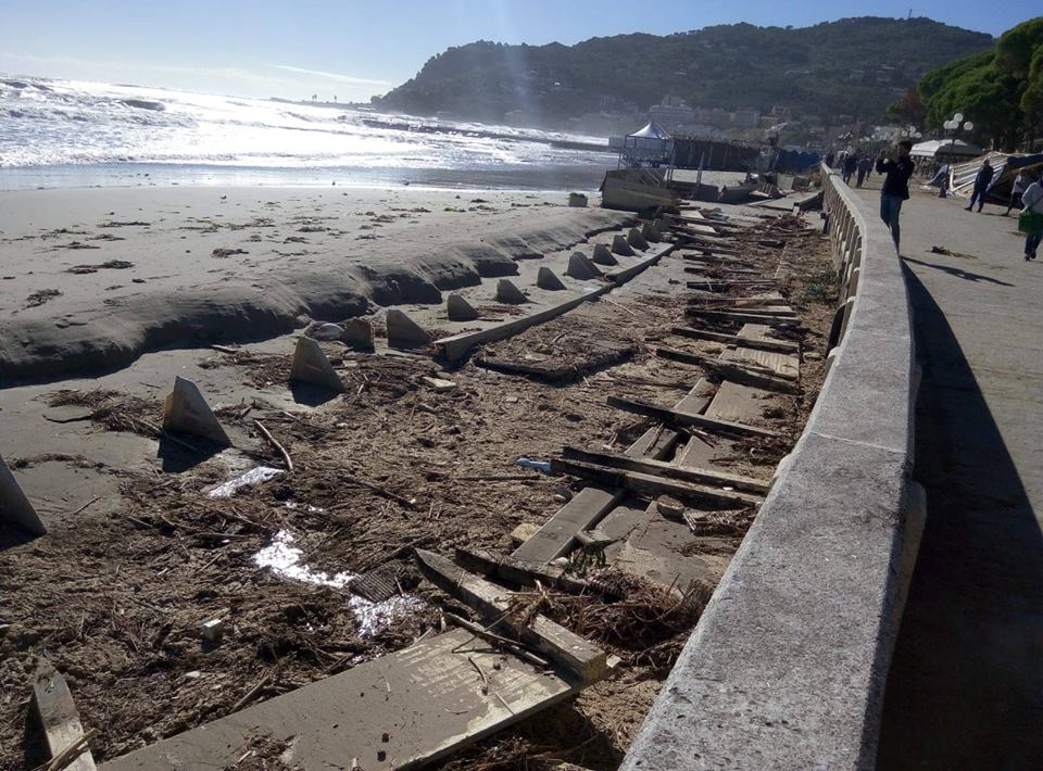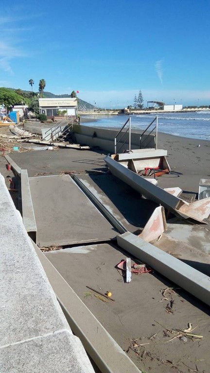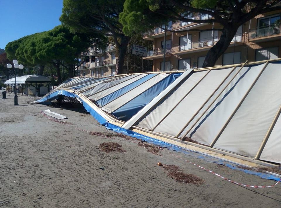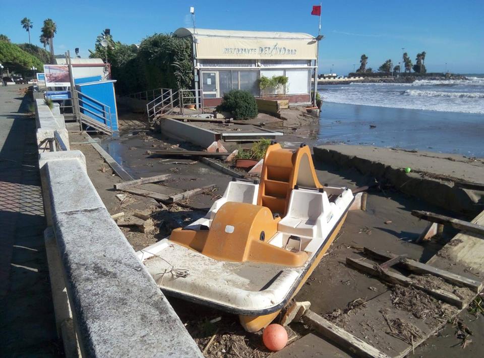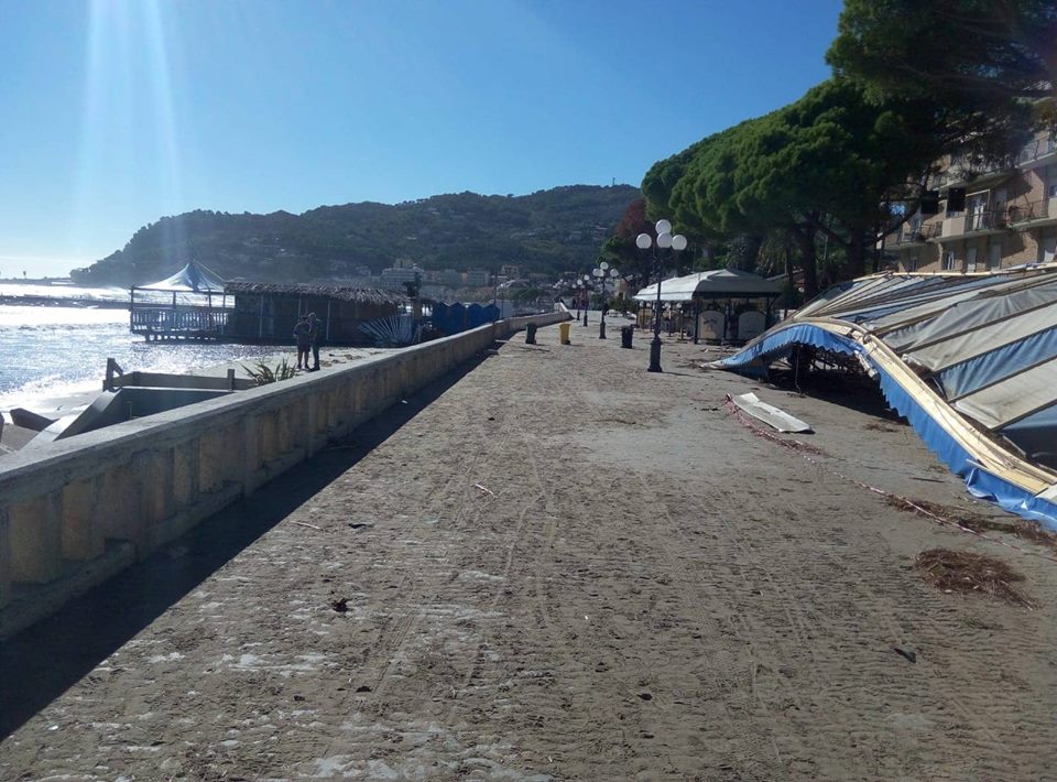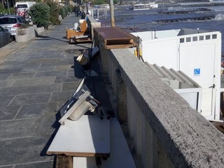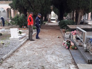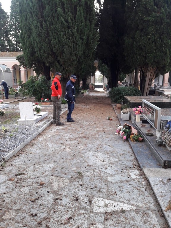Maltempo, la conta dei danni a Diano Marina, alberi caduti, danneggiati la passeggiata a mare e il cimitero (foto)