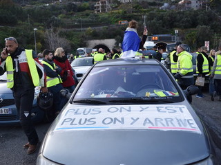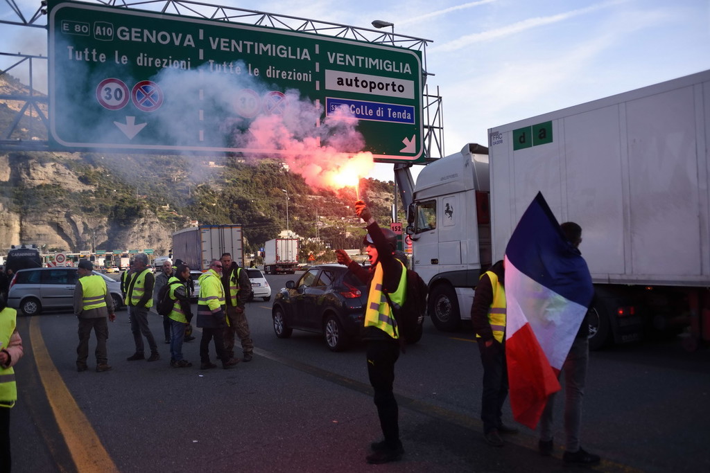 Ventimiglia: sbloccata la situazione al valico della A10, i 'Gilet Jaunes' si spostano nella zona della 'Turbie' (Foto e Video)