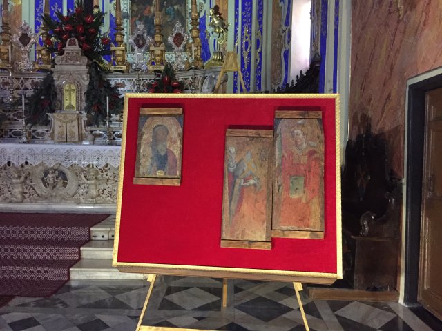 Le tavole raffigurano un Santo Stefano, di straordinaria bellezza, ben conservato, un Santo Vescovo non identificato, a cui manca la testa, e San Giovanni Evangelista riconoscibile per il calice, sono mutile, in quanto resecate da un originario polittico, di cui Giorgio Gavaldo ha ipotizzato la struttura. Per l’occasione sono interventi infine il Duo Arpa e voce Eala Bahn ed il gruppo Arpe in giro. Le tre tavole saranno esposte fino al 6 gennaio nel Presbiterio della chiesa parrocchiale di San Tommaso Apostolo in Dolcedo".