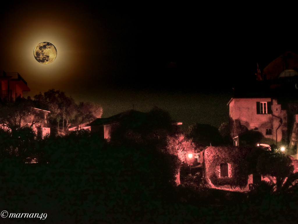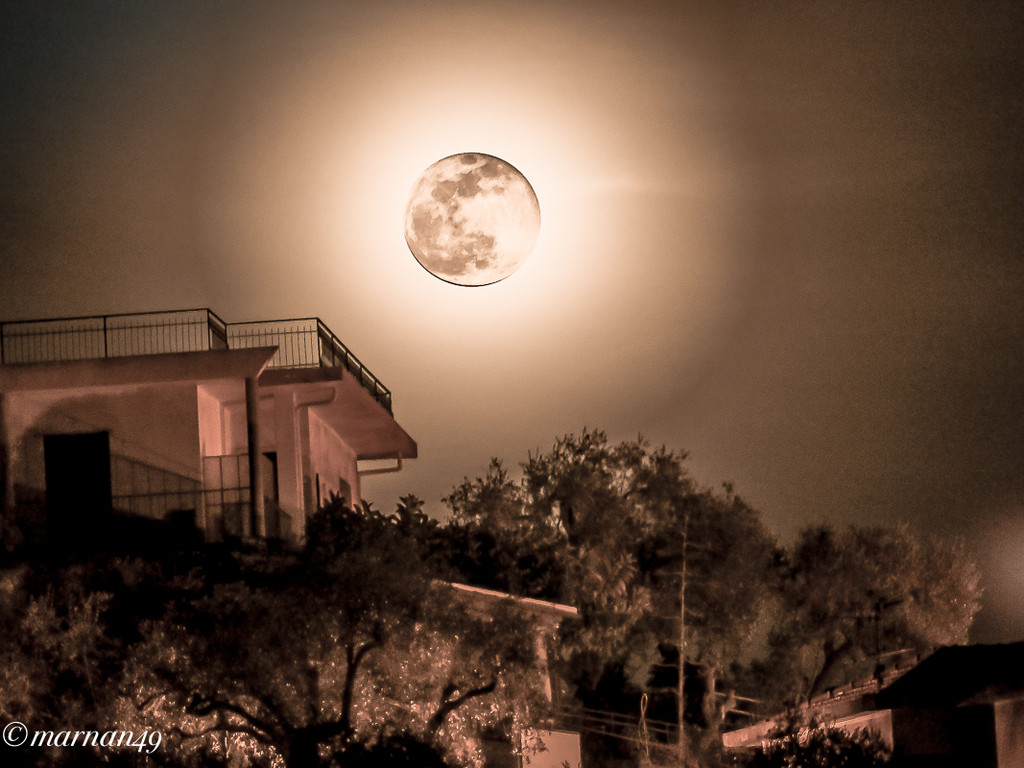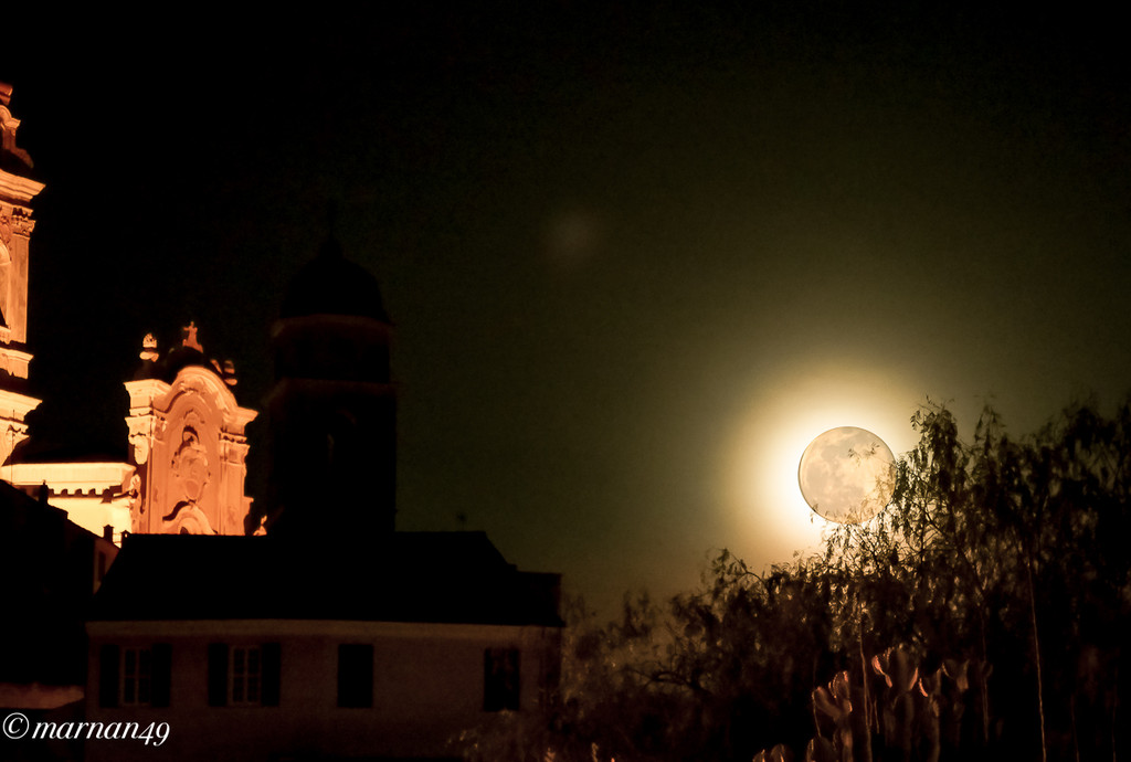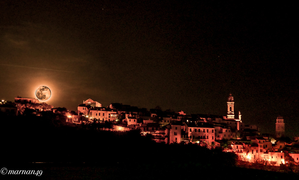 La luna piena e così vicina è un evento che si ripete ogni anno, ma non perde mai di fascino. Nelle foto di Marcello Nan la vediamo nel cielo di Cervo.Di solito la distanza è di circa 30.000 km in più.