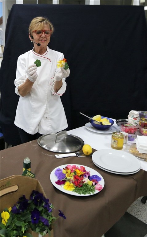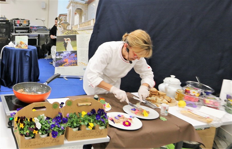 Ore 16,00 "Fiori e fornelli", dimostrazione floreale di Paola Zattera Dagnino, insegnante, dimostratrice e giudice internazionale dell'EDFA di Genova.