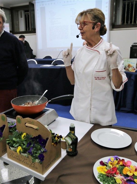 Ore 17.30 show cooking di Rosa D’Agostino del ristorante Gin di Castelbianco e Cinzia Chiappori dell’Osteria del Tempo stretto di Albenga con fiori messi a disposizione da Ravera Bio. Conduce l’incontro il giornalista Stefano Pezzini.