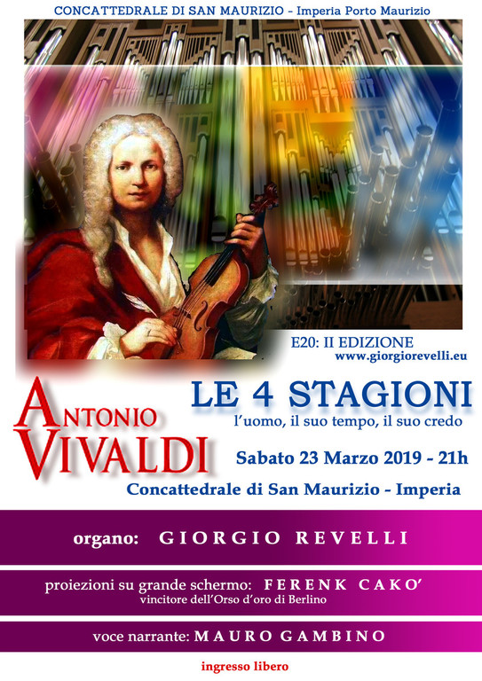 L’iniziativa del maestro Giorgio Revelli, responsabile delle attività culturali del Duomo di San Maurizio a Imperia, fonde la trascrizione per solo organo dell’opera orchestrale, con le immagini documentarie ed illustrative, proiettate su grande schermo, del famoso scenografo ungherese Ferenc Cakò, vincitore di importantissimi premi internazionali tra i quali l’Orso d’oro del Festival della cinematografia di Berlino. Come nella versione completa delle Quattro stagioni vengono inoltre aggiunte le letture dei poemetti scritti dallo stesso Vivaldi, che preludiano alla parte musicale, grazie alla voce narrante di Mauro Gambino. Un vero concerto-viaggio illustrativo tra virtuosismo, impatto sonoro e riflessione.