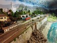 Ma forse l'aspetto più straordinario del plastico ferroviario di Bussana Vecchia è il movimento dei treni attraverso questi tre ambienti.