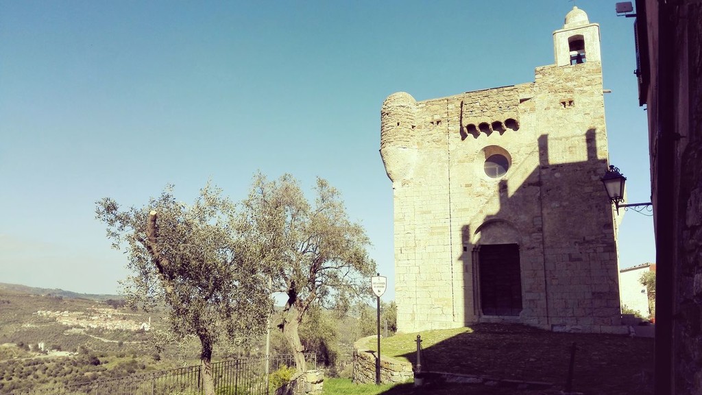 Il simbolo di Lingueglietta: uscendo dallo stretto reticolo del centro storico raggiungiamo un costone quasi pianeggiante da dove si dominano la valle del San Lorenzo e il mare. E' davvero un luogo meraviglioso ma la nostra attenzione è attratta dalla particolare costruzione che abbiamo davanti: è una torre...no a ben vedere forse è una chiesa…