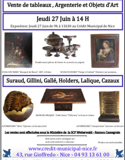 Per avere un'idea di come funziona il Crédit Municipal, potrete seguire le prossime aste, che avranno luogo nelle date: