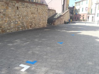 Ecco i posteggi in piazza Parasio. Come annunciato, è stata inserita oggi la nuova segnaletica orizzontale con il disegno di 15 stalli blu e bianchi. Non le consuete strisce, ma i semplici angoli che delimitano gli spazi di sosta.