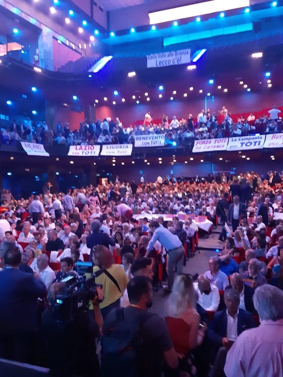 La convention è iniziata con il video “Sono al Brancaccio perché” con un videomessaggio di molte delle persone oggi presenti che, con l’hastag #cambiamoinsieme, hanno spiegato perché hanno scelto di essere presenti e sostenere Giovanni Toti.