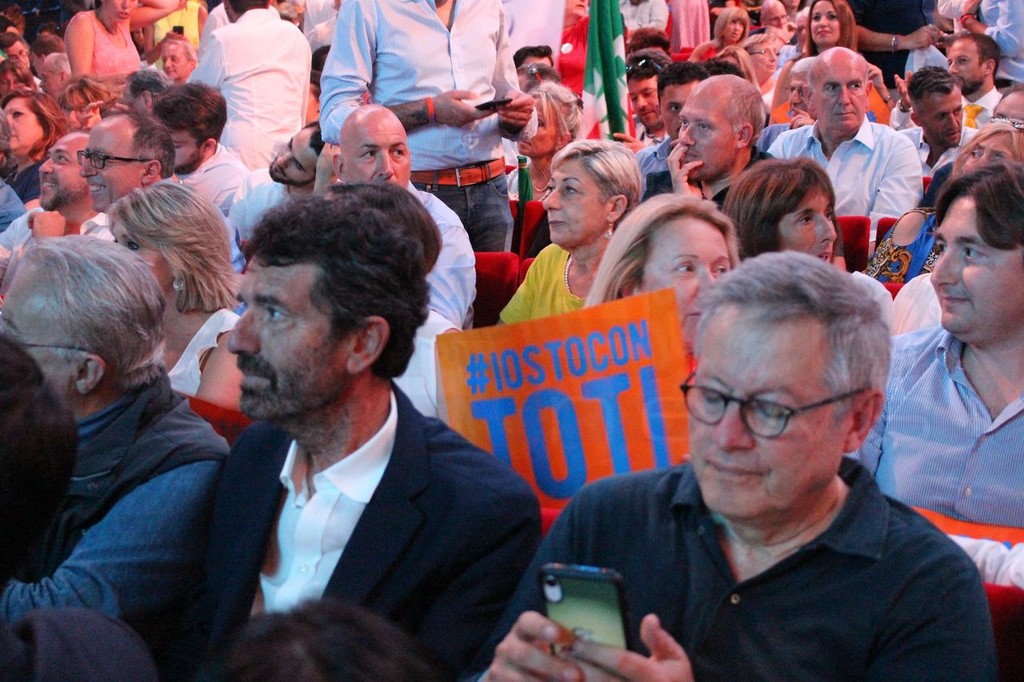Un Teatro Brancaccio gremito all'inverosimile ha accolto "L'Italia in crescita", la convention politica nazionale di Giovanni Toti, presidente della Regione Liguria ma da pochi giorni anche uno dei coordinatori di Forza Italia, insieme a Mara Carfagna. E proprio alla svolta da dare al partito è stata dedicata la giornata organizzata a Roma, a cui hanno presenziato oltre 1700 sostenitori da tutta Italia, compresi più di 800 amministratori locali, molti dei quali anche liguri, per Sanremo ad esempio erano presenti 20 membri del gruppo dei cento.