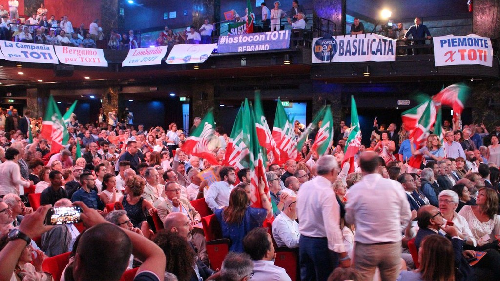 Poi la ribalta passa al vero protagonista, Giovanni Toti, che analizza in modo lucido ma a tratti anche impietoso la situazione del centrodestra: "Una macchina elettorale formidabile", la definisce, "ma sui muscoli della Lega. Questo è un problema, perché i temi del lavoro, delle famiglie e delle imprese hanno sempre meno rappresentanza politica. E non ci siamo noi al governo del Paese, ma un'alleanza che tira fuori il peggio dagli amici della Lega. In dieci anni Forza Italia è passata dal 40 al 6%, e c'è ancora chi dice che poteva anche andare peggio... Se siamo qui oggi è perché ci rendiamo tutti conto che non si può andare avanti così".