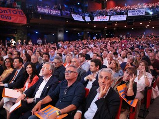 Poi la ribalta passa al vero protagonista, Giovanni Toti, che analizza in modo lucido ma a tratti anche impietoso la situazione del centrodestra: "Una macchina elettorale formidabile", la definisce, "ma sui muscoli della Lega. Questo è un problema, perché i temi del lavoro, delle famiglie e delle imprese hanno sempre meno rappresentanza politica. E non ci siamo noi al governo del Paese, ma un'alleanza che tira fuori il peggio dagli amici della Lega. In dieci anni Forza Italia è passata dal 40 al 6%, e c'è ancora chi dice che poteva anche andare peggio... Se siamo qui oggi è perché ci rendiamo tutti conto che non si può andare avanti così".