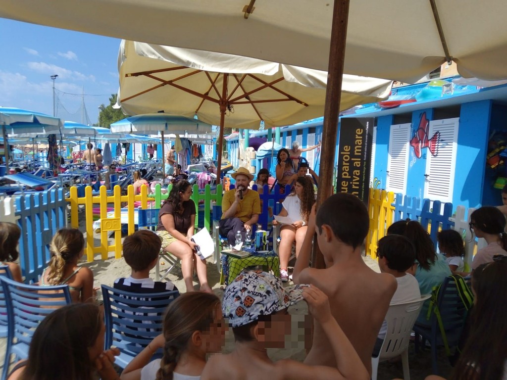 “In questa splendida location, sotto gli ombrelloni, - spiegano gli organizzatori - abbiamo ascoltato storie, parlato di Viola e Indaco, di balene volanti e barchette di carta! Ogni occasione è buona per ascoltare un buon libro e quando è un super autore per ragazzi a raccontarlo il risultato non può che essere strepitoso!