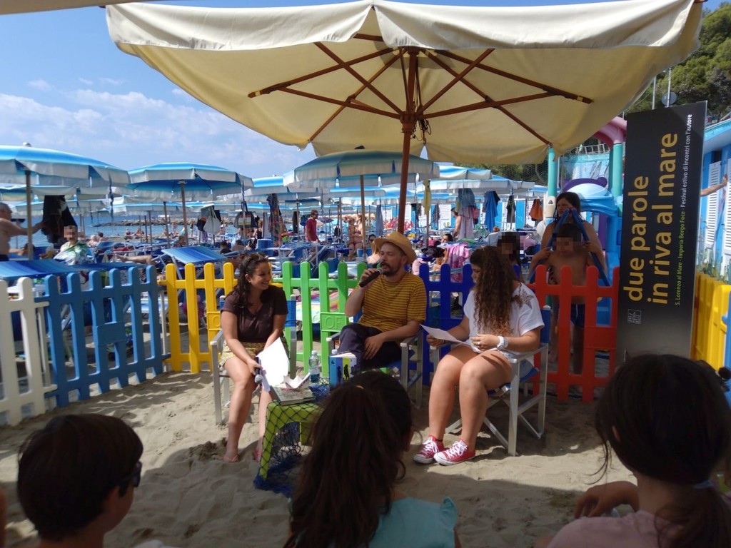 La mattina, alle 11.00 per l'appuntamento in spiaggia presso i Bagni ‘U Nustromu’, a San Lorenzo al Mare, l'autore ha incontrato i ragazzi ed è stato intervistato da Giulia e Ilaria del gruppo di lettura ‘Le Ombre dei libri’, gruppo di lettura di giovani lettori.