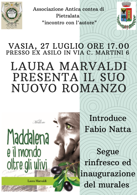Il prossimo appuntamento è per sabato alle 17 con l'autrice Laura Marvaldi, presentata da Fabio Natta, con il romanzo “Maddalena e il mondo oltre gli ulivi”. L'evento avrà luogo nei giardini dell'ex asilo San Giuseppe, in via case Martini 6, dove con l'occasione verrà inaugurato anche il murales realizzato da Davide Donatelli.