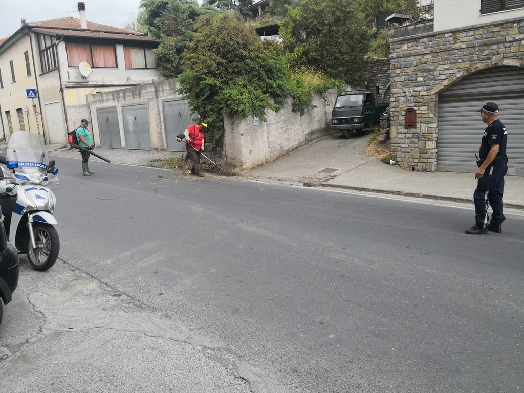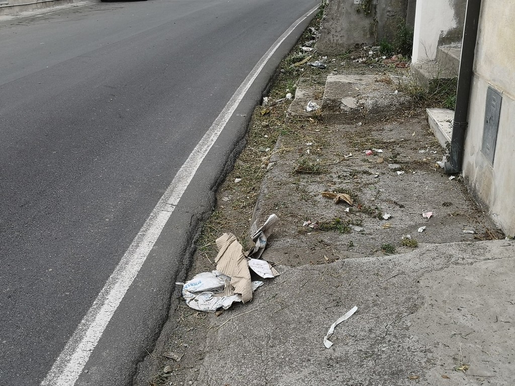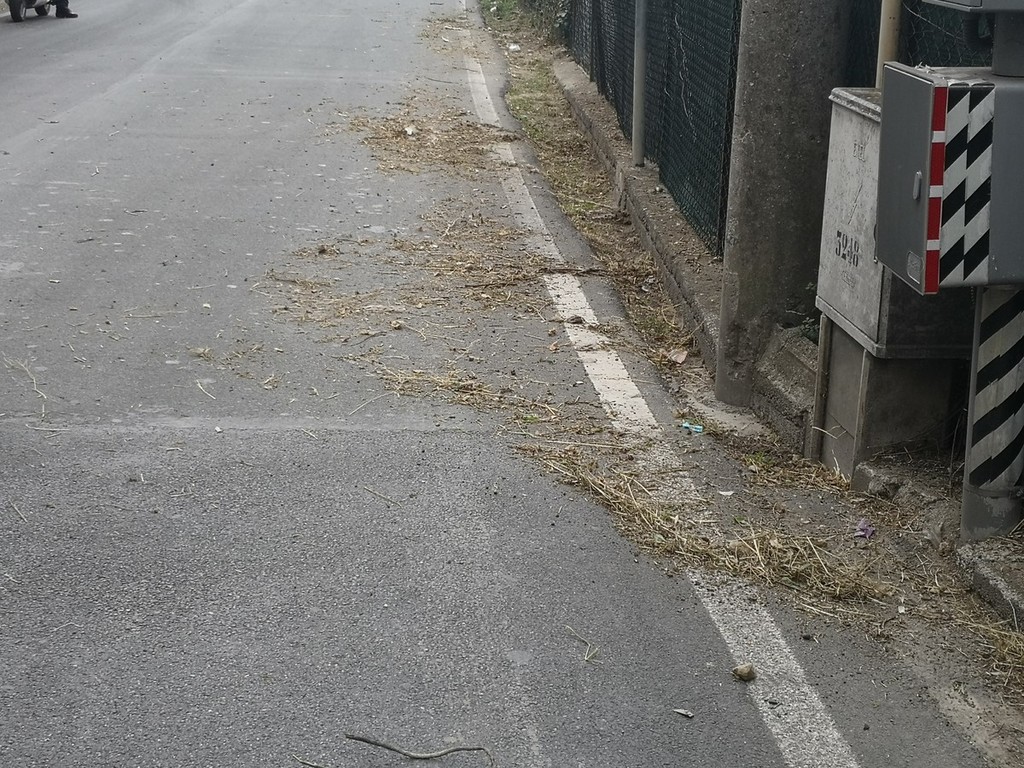 Dalle prime ore del pomeriggio un operatore ecologico sta provvedendo al taglio delle erbacce lungo l'arteria principale della zona portorina con Gagliano a 'soffiare' via il reciso.