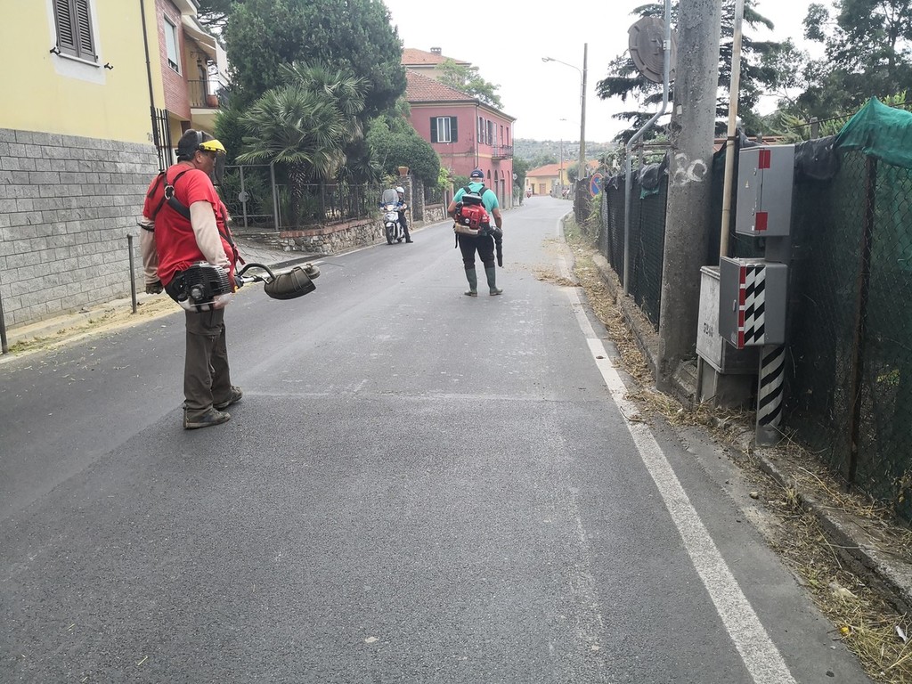 Via la giacca per stivali e soffiatore in azione, non è un operaio del comune d'Imperia ma l'assessore Antonio Gagliano. Il delegato a Viabilità e Polizia Municipale ha infatti cambiato vesti per un giorno aiutando in maniera fattiva nelle operazioni di sfalcio e pulizia in corso in località Caramagna.