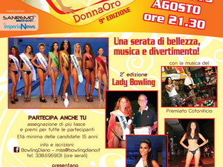 Saranno più di venti, domani sera, le pretendenti alla corona di Miss Bowling DonnaOro, contest giunto alla nona edizione e sempre molto atteso dal pubblico. L’appuntamento è per le ore 21.30 di martedì 13 agosto sulla terrazza del Bowling di Diano, a Diano Castello, a soli 500 metri dal centro di Diano Marina. C’è da assegnare un trono lasciato vacante dalla 20enne cuneese Laila Bounani, regina l’anno scorso. In palio anche altre fasce, quelle di Miss Alfa Cosmetics, Miss Tagli & Dettagli, Miss Girasole, Miss Diano Castello, Miss ImperiaNews.it e Miss Gossipchic.net. Da assegnare anche il titolo di Lady Bowling DonnaOro, categoria riservata alle non più giovanissime, introdotta nel 2018 con interesse e successo.