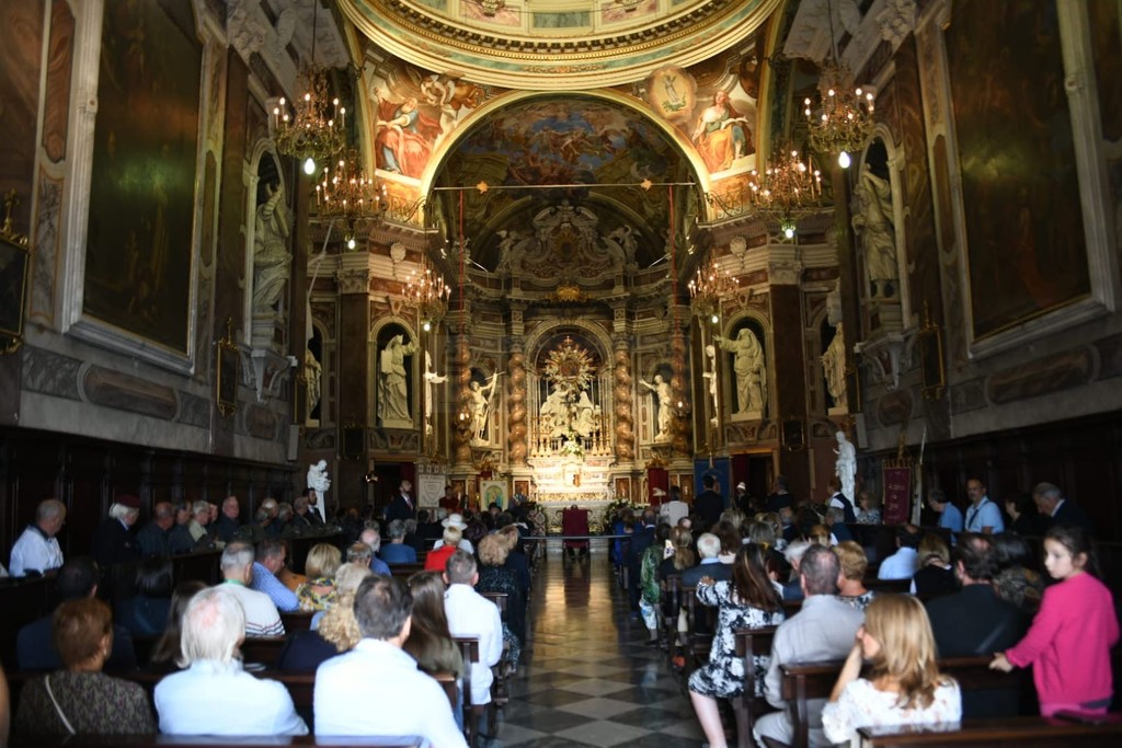 Poi, come previsto dal programma, la visita alla Madonna della Costa, evento aperto al pubblico ma con un limite massimo di 200 persone (rigorosamente sedute) in chiesa. Qui il Principe ha visitato la cappella Grimaldi, all'interno della quale si trova una Pala di Bartolomeo Guidobono raffigurante la visita di Maria ad Elisabetta, opera che fu donata nel 1708 dal Principe Grimaldi alla sorella, la badessa del Monastero della Visitazione di Sanremo.