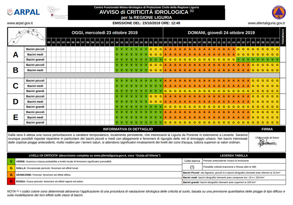 Il livello di saturazione del terreno sembra fortunatamente meno grave del resto della regione, ma la pioggia prevista potrà creare sicuramente piccole frane e qualche smottamento, classico ormai nel caso di forti precipitazioni.