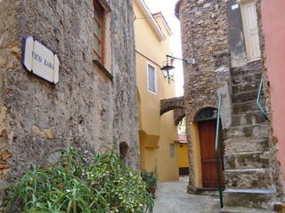 Cae Süttane è la borgata più estesa. Risaliamo la pedonale e attraversiamo la carrozzabile infilandoci nei carruggi coperti. In questa parte il paese cambia completamente, assumendo le caratteristiche del tipico borgo medievale arroccato. La pendenza aumenta così come la complessità degli incroci tra i vicoli.