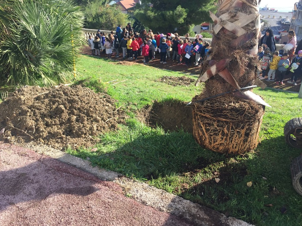 "Avevamo già piantumato due palme e la terza oggi con i bambini. Volevamo festeggiare la giornata nazionale dell'albero, ma il tempo non ce lo ha permesso. Abbiamo dunque rinviato a oggi con questo sole magnifico.