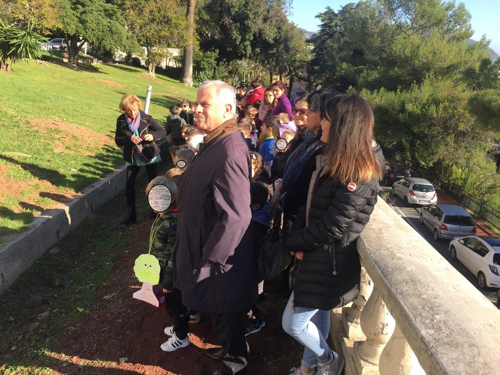 Presenti il sindaco Claudio Scajola e l'assessore all'Ambiente Laura Gandolfo oltre a tanti giovani alunni delle scuole dell'infanzia e primarie cittadine. Gandolfo ha tenuto una piccola lezione all'aperto per poi lasciare spazio alla piantumazione vera e propria effettuata dagli operai comunali. In totale le palme piantumate sono tre sulle quali verrà, in un secondo momento, apposta cartellonistica riportante i 'fioretti' che i bambini intendono fare per l'ambiente.