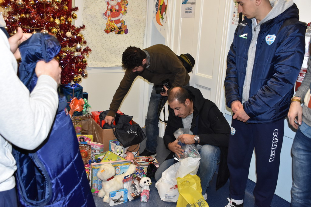 Giornata di doni e di tanti ‘Babbo Natale’, quest’oggi nei reparti di Pediatria degli ospedali di Sanremo ed Imperia. Ha inaugurato la serie di appuntamenti la Sanremese Calcio che, con parte della dirigenza e quasi tutta la squadra che milita nel campionato di Serie D (è in testa al girone), ha portato una serie di giocattoli per i bambini che sono ricoverati nel reparto.