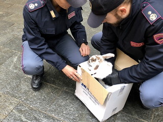 Due operatori della Volante di Imperia questa notte hanno recuperato un coniglio solo e impaurito in mezzo alla carreggiata.